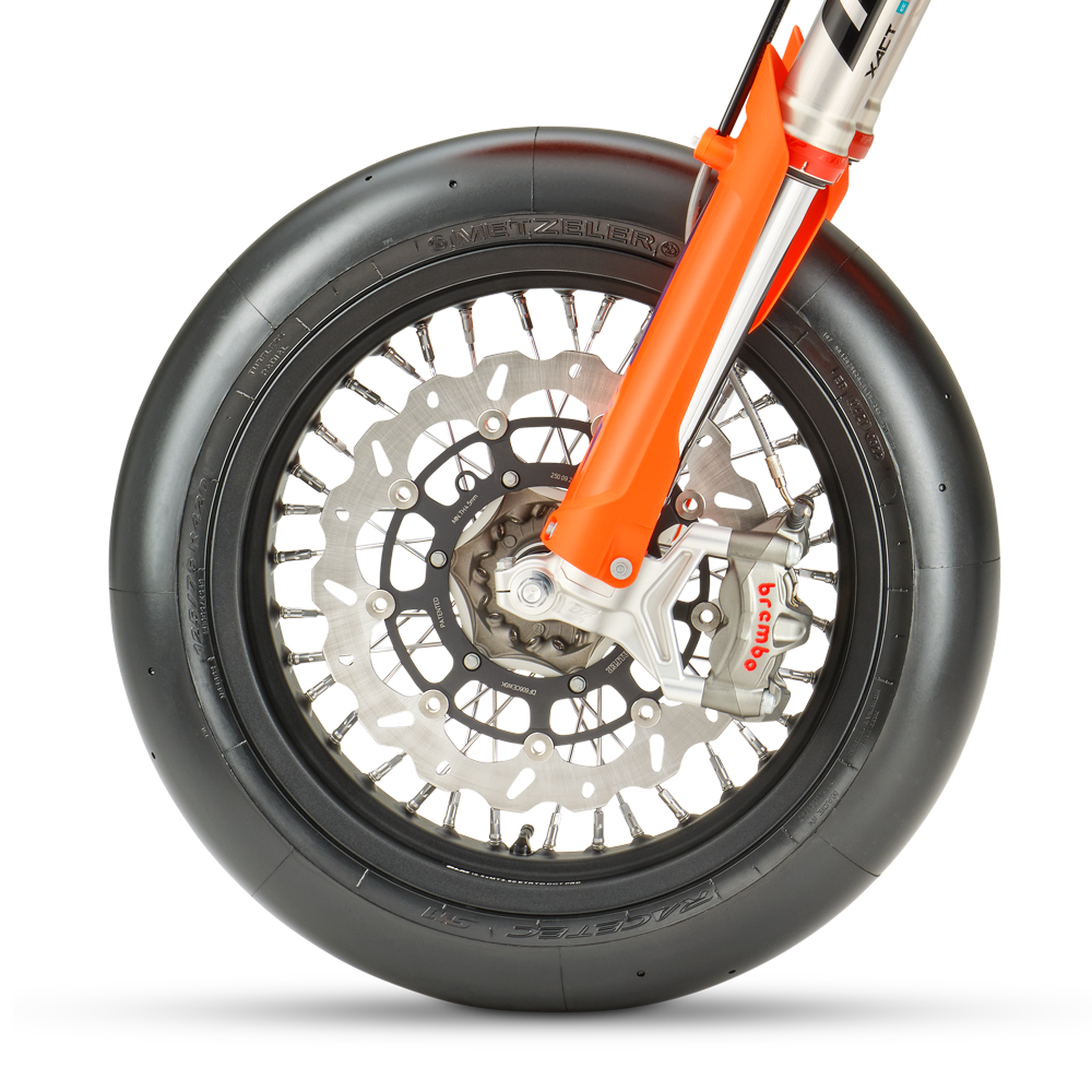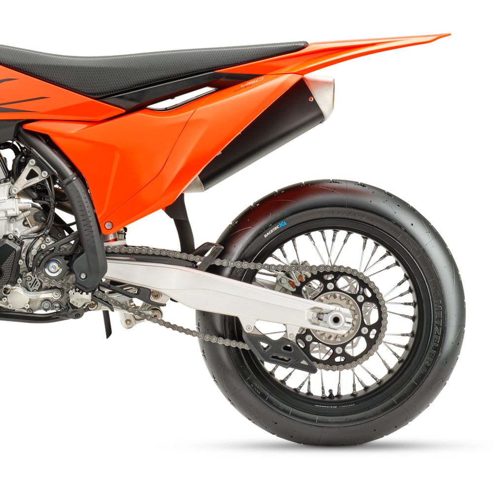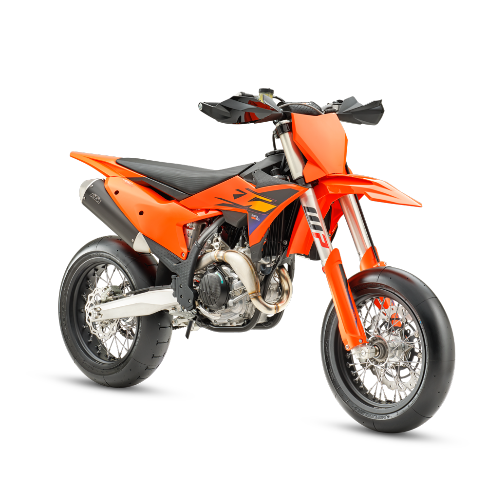 Die KTM 450 SMR repräsentiert die einzige wirkliche Form des Motorradsports mit allen Facetten. Sie greift die Vorteile der siegreichen KTM 450 SX-F auf und macht sie mit Rennslicks, starken Bremsen und einer erstklassigen Federung fit für den Asphalt. Das ist READY TO RACE in Reinform.