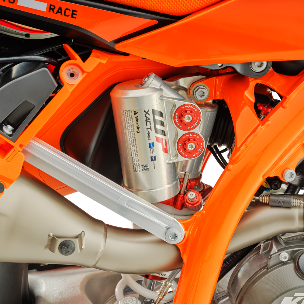Die 2026 KTM 450 SX-F FACTORY EDITION ist eine limitierte Auflage der KTM 450 SX-F FACTORY EDITION, die die letzte Lücke zwischen dem Serienmodell und dem Werksmodell schließt und echte READY TO RACE Performance mit Upgrades auf Elite-Niveau bietet. Für das Jahr 2026 gehören die branchenführende WP XACT PRO 7548 Gabel vorne und das WP XACT PRO 8950 Federbein hinten zur Serienausstattung. Er wurde für Fahrer entwickelt, die um jede Zehntelsekunde kämpfen und verfügt über rennerprobte Komponenten, die direkt aus dem Motocross-Rennsport von oben kommen.